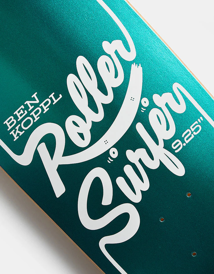 The Blast Skates Koppl Iridescent Roller Surfer Skateboard Deck is a special edition board with a signature shape design by Ben Koppl.